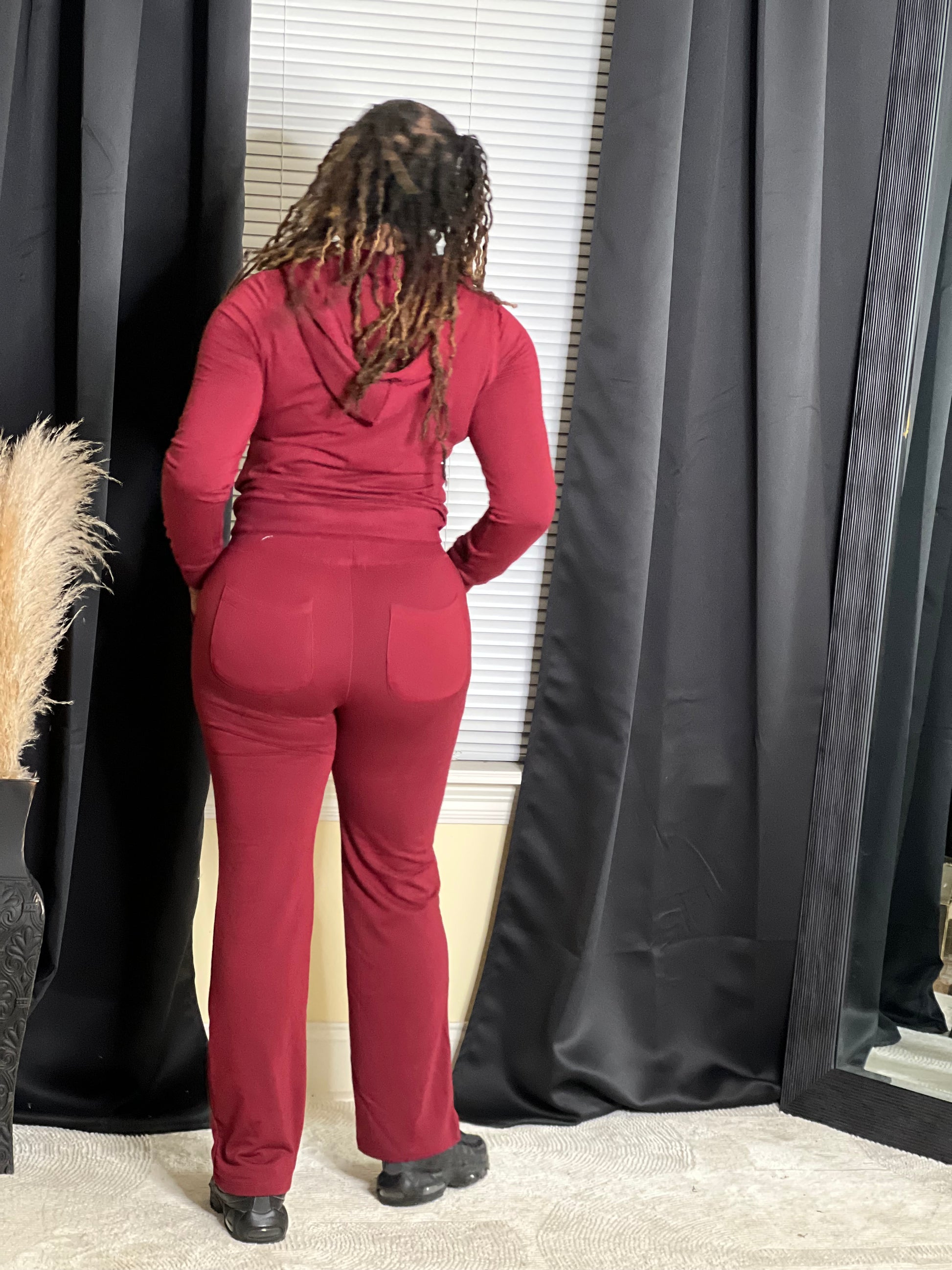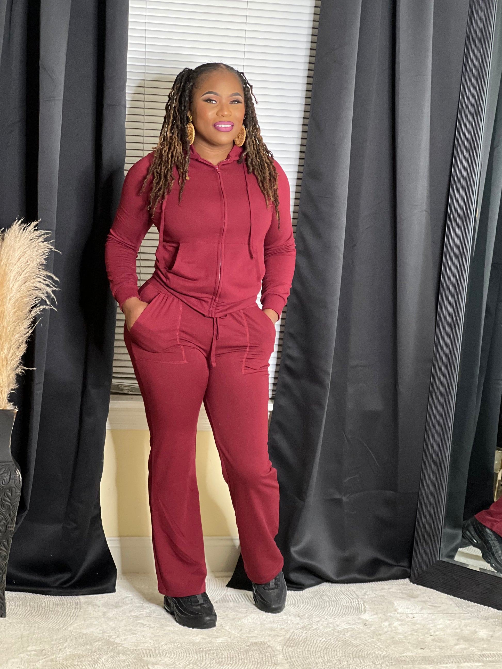 Wide Leg Jogger Set Burgundy